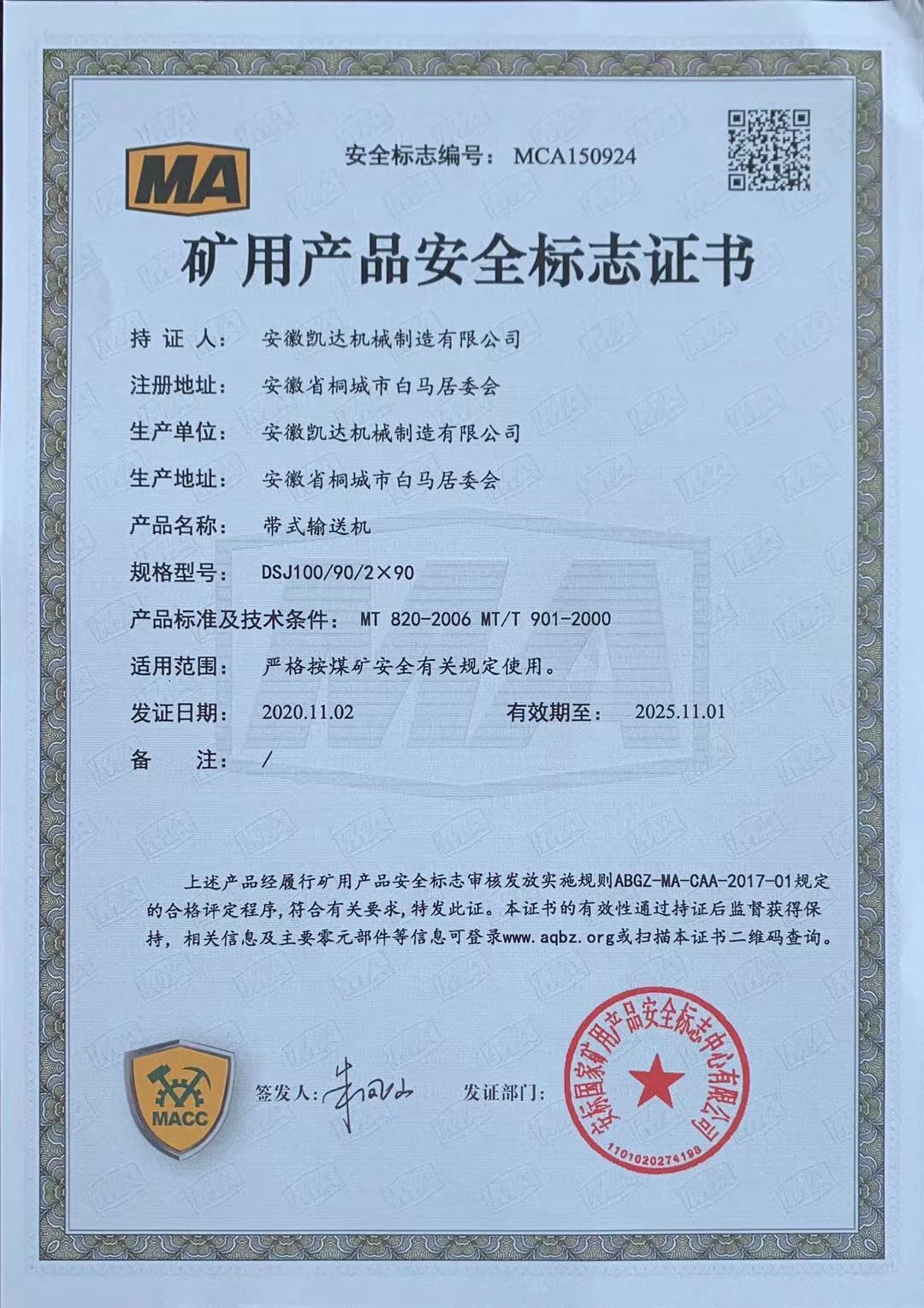 礦用產(chǎn)品安全標(biāo)志證書(shū)-帶式輸送機(jī)52