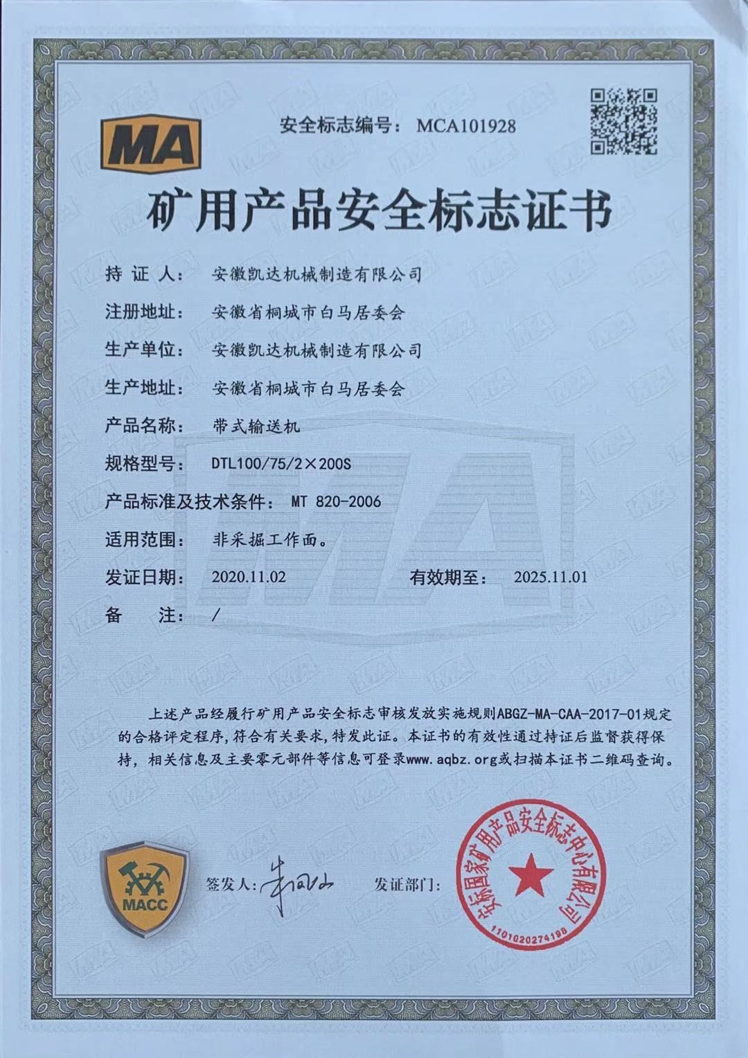 礦用產(chǎn)品安全標(biāo)志證書-帶式輸送機(jī)17